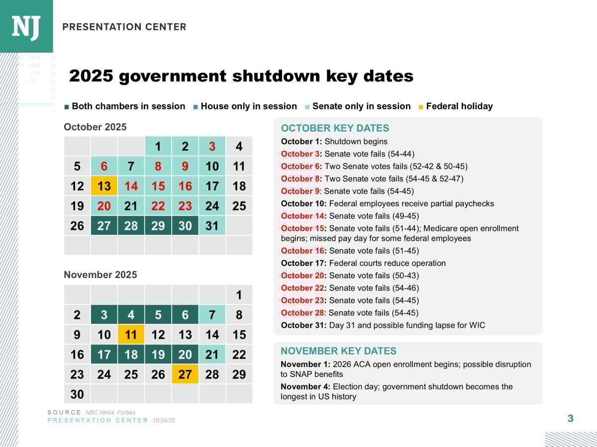 The Hill: Senate GOP, Democrats Looking For ‘Off Ramp’ To End Shutdown Next Week Senate Republicans and Democrats are trying to hammer out a proposal to end the 30-day government shutdown as soon as next week, as some centrist Democrats argue behind the scenes that their party has successfully highlighted rising health care costs and it’s time to end the stalemate. Shutdown fatigue on Capitol Hill is growing as the government stoppage approaches the one-month mark, and the pain is increasing. (Bolton, 10/30)